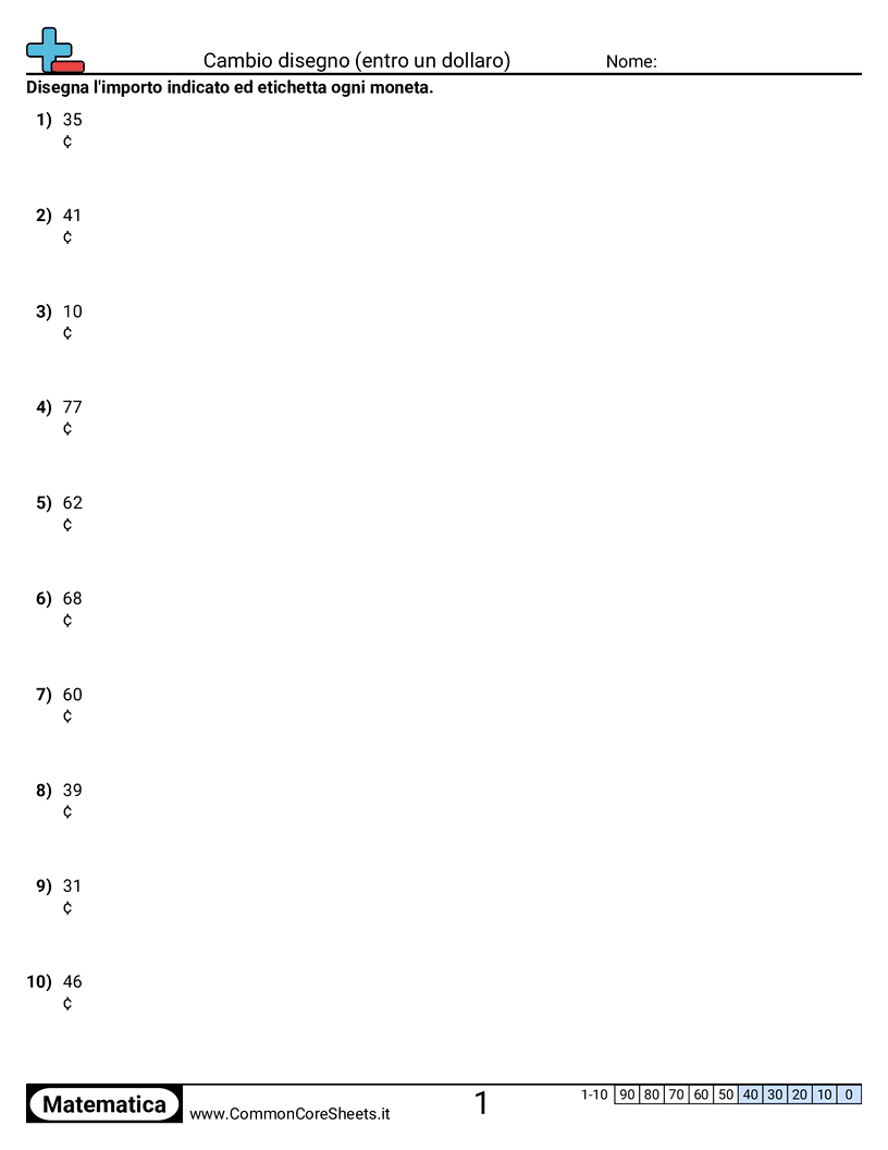 Schede di lavoro gratuite di math su Cambio disegno (entro un dollaro). Ogni scheda contiene 10 esercizi con soluzioni ed è ideale per insegnanti e istruzione a casa. Puoi scaricare il PDF, creare flashcard o impostarlo per l'apprendimento online.