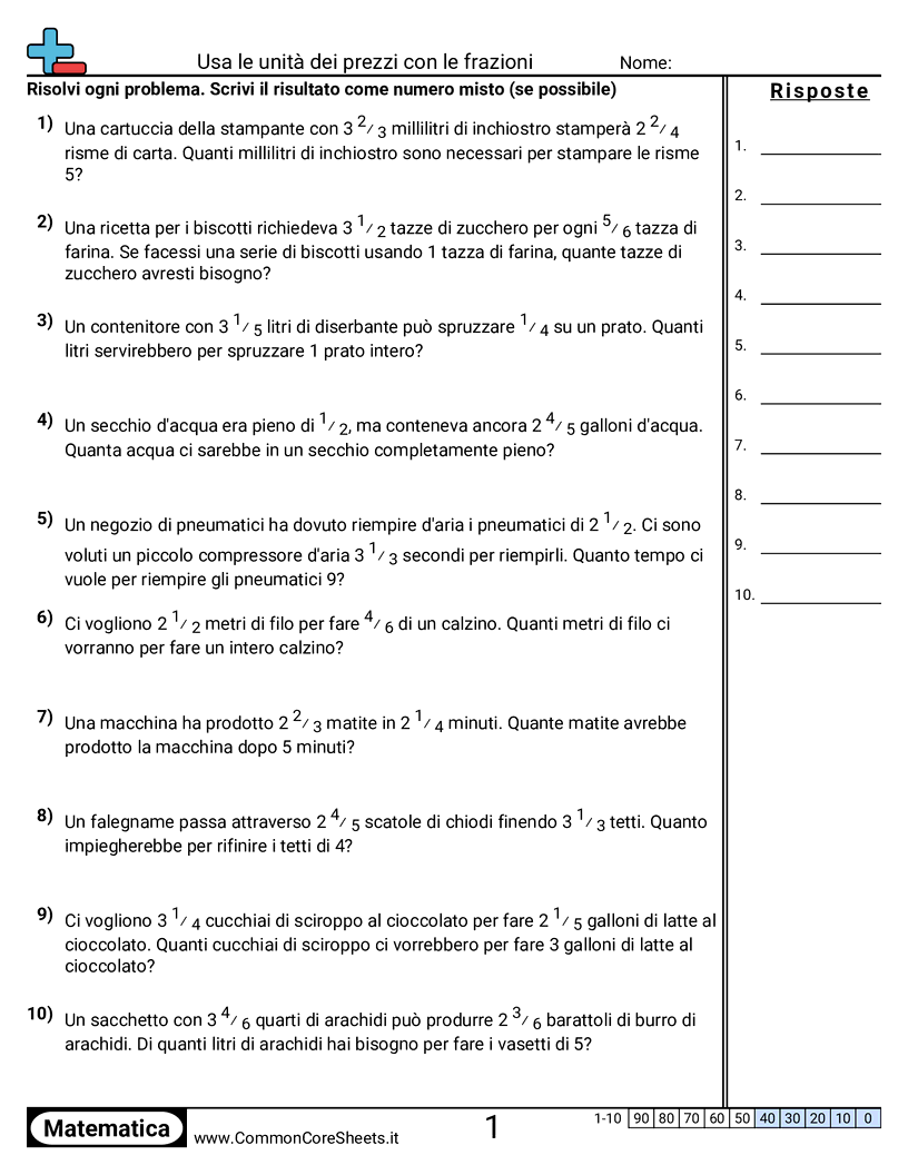 Schede di lavoro gratuite di math per 2ª Media (7rp1) su Usa le unità dei prezzi con le frazioni. Ogni scheda contiene 10 esercizi con soluzioni ed è ideale per insegnanti e istruzione a casa. Puoi scaricare il PDF, creare flashcard o impostarlo per l'apprendimento online.