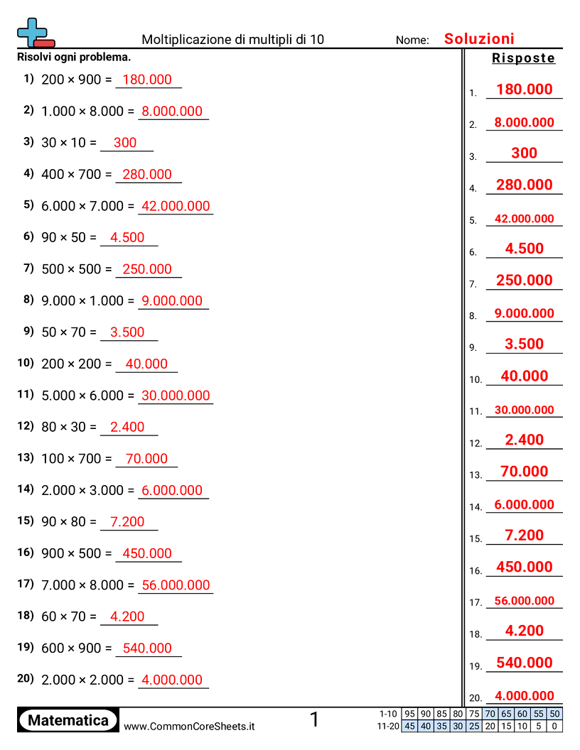 Schede di lavoro gratuite di math su Moltiplicazione di multipli di 10. Ogni scheda contiene 20 esercizi con soluzioni ed è ideale per insegnanti e istruzione a casa. Puoi scaricare il PDF, creare flashcard o impostarlo per l'apprendimento online.