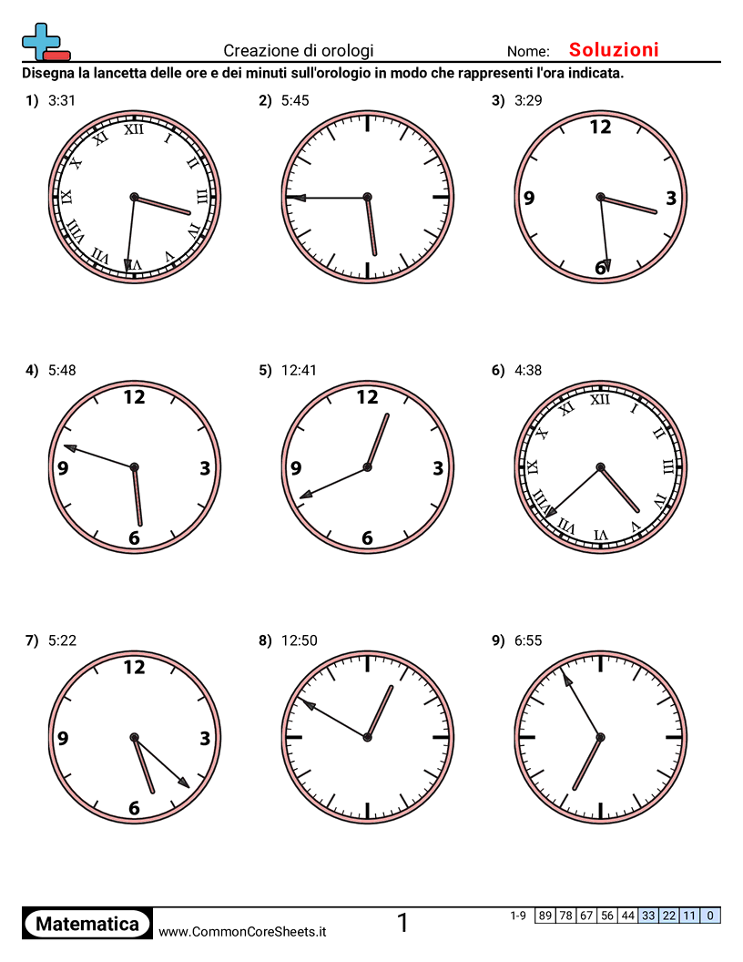 Schede di lavoro gratuite di math su Creazione di orologi. Ogni scheda contiene 9 esercizi con soluzioni ed è ideale per insegnanti e istruzione a casa. Puoi scaricare il PDF, creare flashcard o impostarlo per l'apprendimento online.