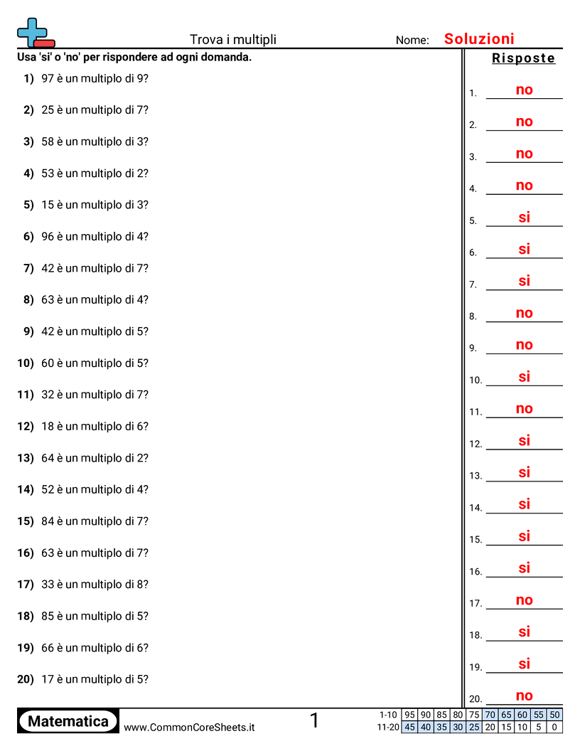 Ogni foglio di lavoro comprende 20 problemi indica i multipli di un numero.