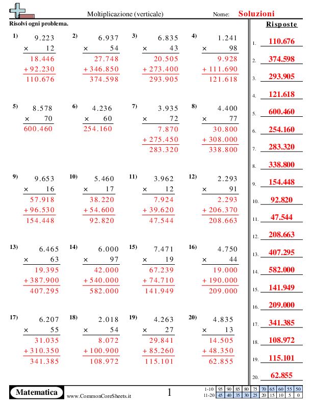 Moltiplicazioni in colonna 4 cifre × 2 cifre