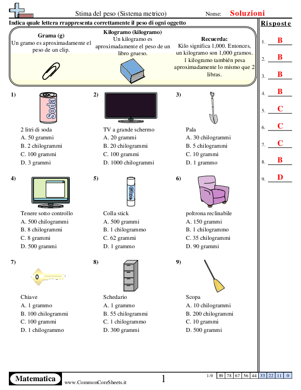 Stai cercando i migliori fogli di lavoro sul peso su internet? Non cercare oltre! I nostri fogli di lavoro gratuiti sul peso sono ideali per leggere una bilancia, stimare il peso e comprendere sia le misure americane che metriche. Con i nostri fogli di lavoro sul peso, puoi facilmente esercitarti e perfezionare misurazioni di qualsiasi tipo. Da once a libbre a chilogrammi, i nostri fogli di lavoro sul peso ti aiuteranno a capire come misurare accuratamente vari pesi. Perfeziona le tue abilità con i nostri fogli di lavoro stampabili sul peso oggi!