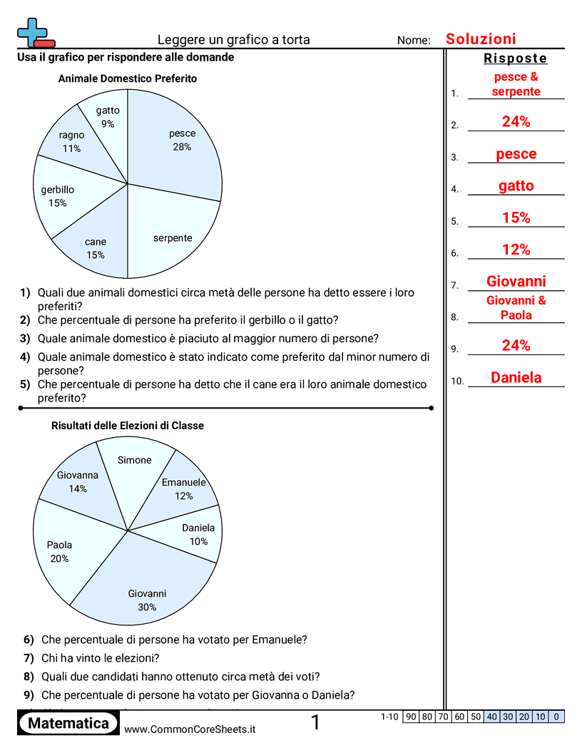 Schede di lavoro gratuite di math su Leggere un grafico a torta. Ogni scheda contiene 10 esercizi con soluzioni ed è ideale per insegnanti e istruzione a casa. Puoi scaricare il PDF, creare flashcard o impostarlo per l'apprendimento online.